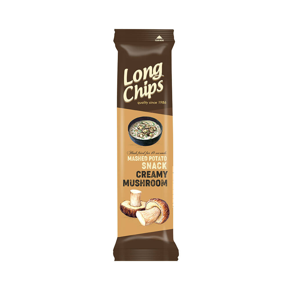 Long Chips Creamy Mushroom to wyjątkowe przekąski ziemniaczane. Smażone w wysokiej jakości oleju rzepakowym tylko przez 10 sekund, przez co są niesamowicie chrupkie i nie są tak tłuste jak klasyczne chipsy. Long Chips mają oryginalny kształt - są długie, płaskie i bardzo cienkie. Umieszczone w tacce, aby nie uległy zniszczeniu. Są dostępne w starannie dobranych smakach.Skład: płatki ziemniaczane (48%), olej słonecznikowy, semolina pszenna, skrobia ziemniaczana, mieszanka aromatyzująca [serwatka w proszku (z mleka), sól, aromat (mleko), aromat dymu wędzarniczego (mleko), cukier, śmietanka w proszku (z mleka), suszony czosnek, suszona cebula, ekstrakty drożdżowe, błonnik ryżowy, karob w proszku, maltodekstryna, skrobia kukurydziana, kwas: kwas jabłkowy], sól, przeciwutleniacz (ekstrakt z rozmarynu). Może zawierać śladowe ilości gorczycy. Bez laktozy: NIE Vege: NIE Certyfikat bio: NIE