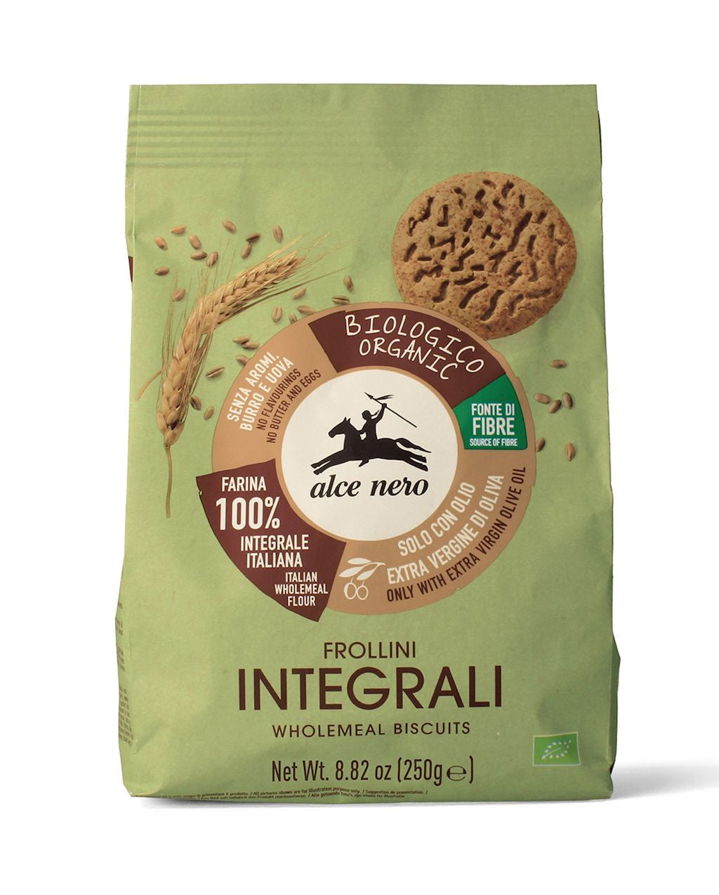 Ciastka pełnoziarniste z oliwą z oliwek extra virgin (6,7 %) bio 250 g - ALCE NERO